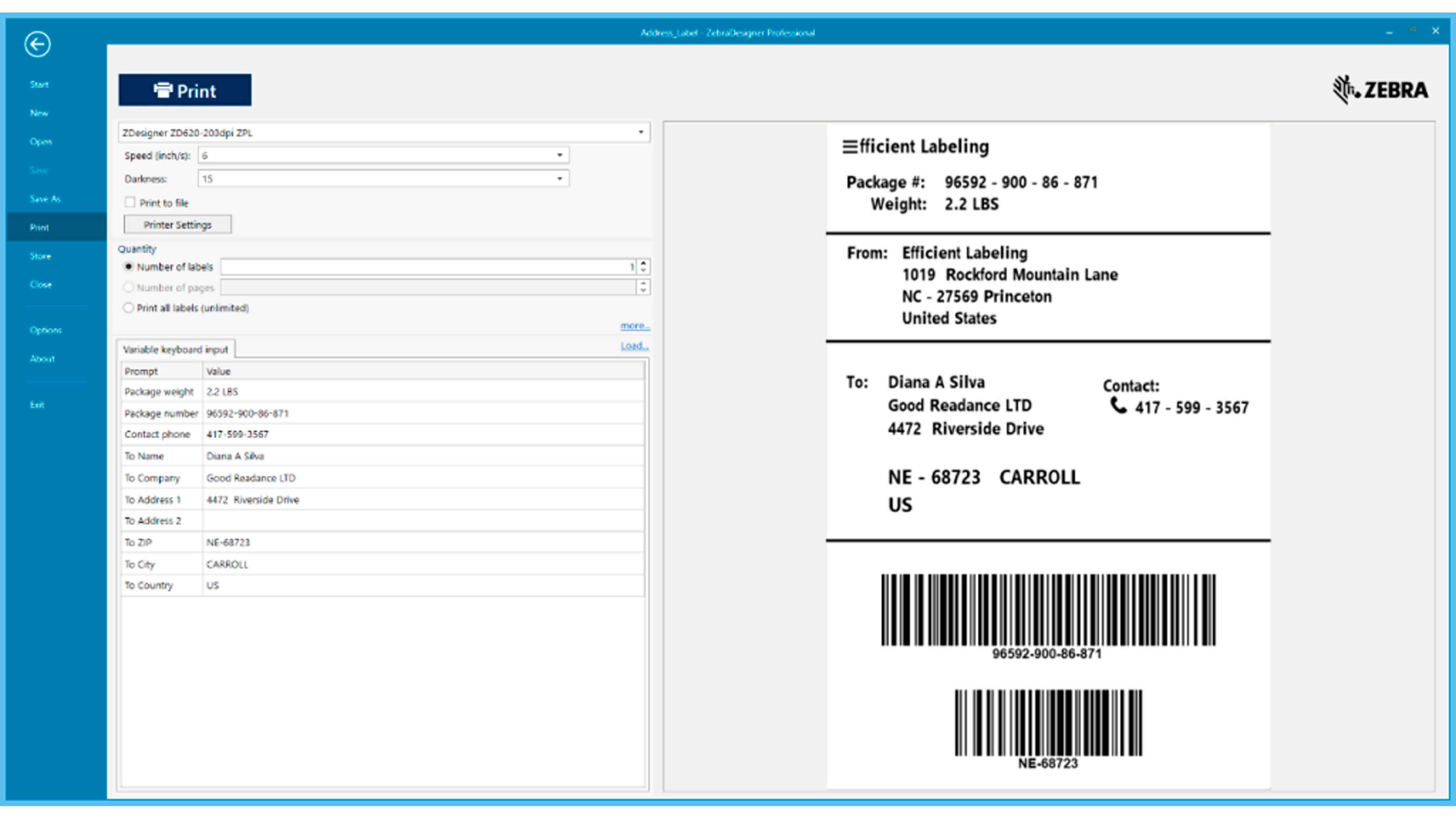 ZebraDesigner Essentials software makes creating industry-standard and compliant labels simple, including fixed or variable data.
