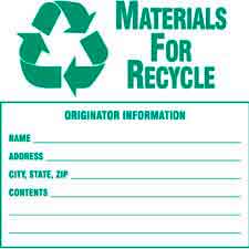 MATERIALS FOR RECYCLE ORIGINATOR INFORMATION NAME ADDRESS CITY, STATE, ZIP CONTENTS Labels