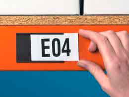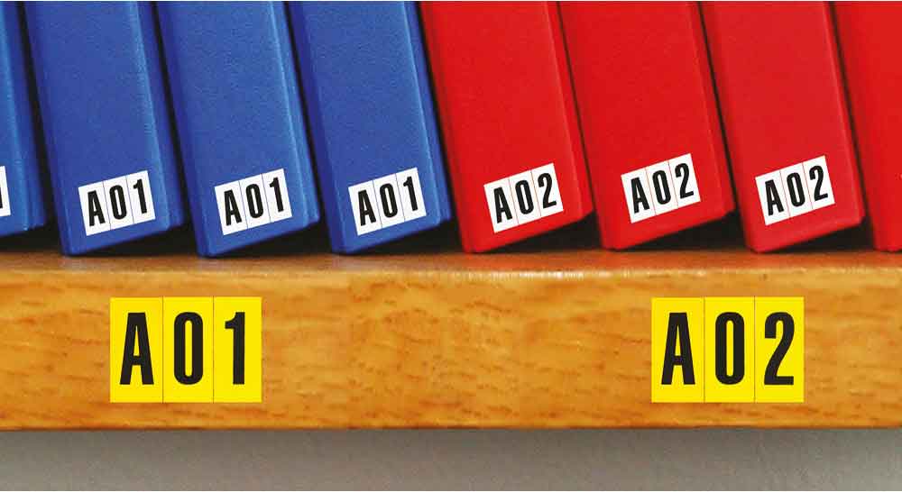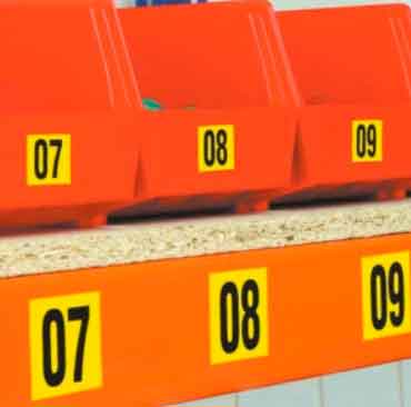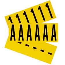 Numbers and letters labels identify equipment, bins and areas of the warehouse required by facility safety and maintenance. Adhesive number and letter stickers can be used to mark tool cribs, bins, shelves, poles, panels, switches and equipment. These labels made of self-sticking vinyl for fast general purpose indoor or outdoor marking. Aluminum embossed characters and high-visibility aluminum utility panels are available for marking utility poles in outdoor environments. Reflective and glow-in-the-dark numbers and letters are also available.