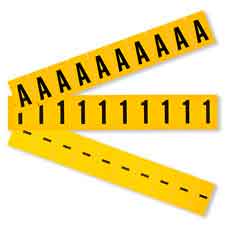 0.25" Character Height Black on Yellow Repositionable Numbers and Letters