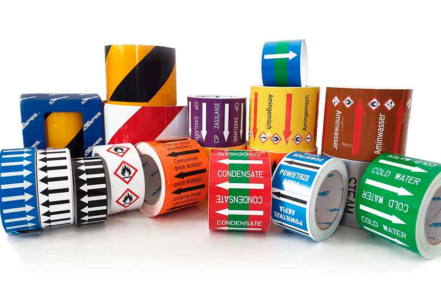 - Printer and Label Applications:Pipe Marker - Label Properties:Aggressive Adhesive, Harsh Environment, Outdoor Durable, Permanent Adhesive