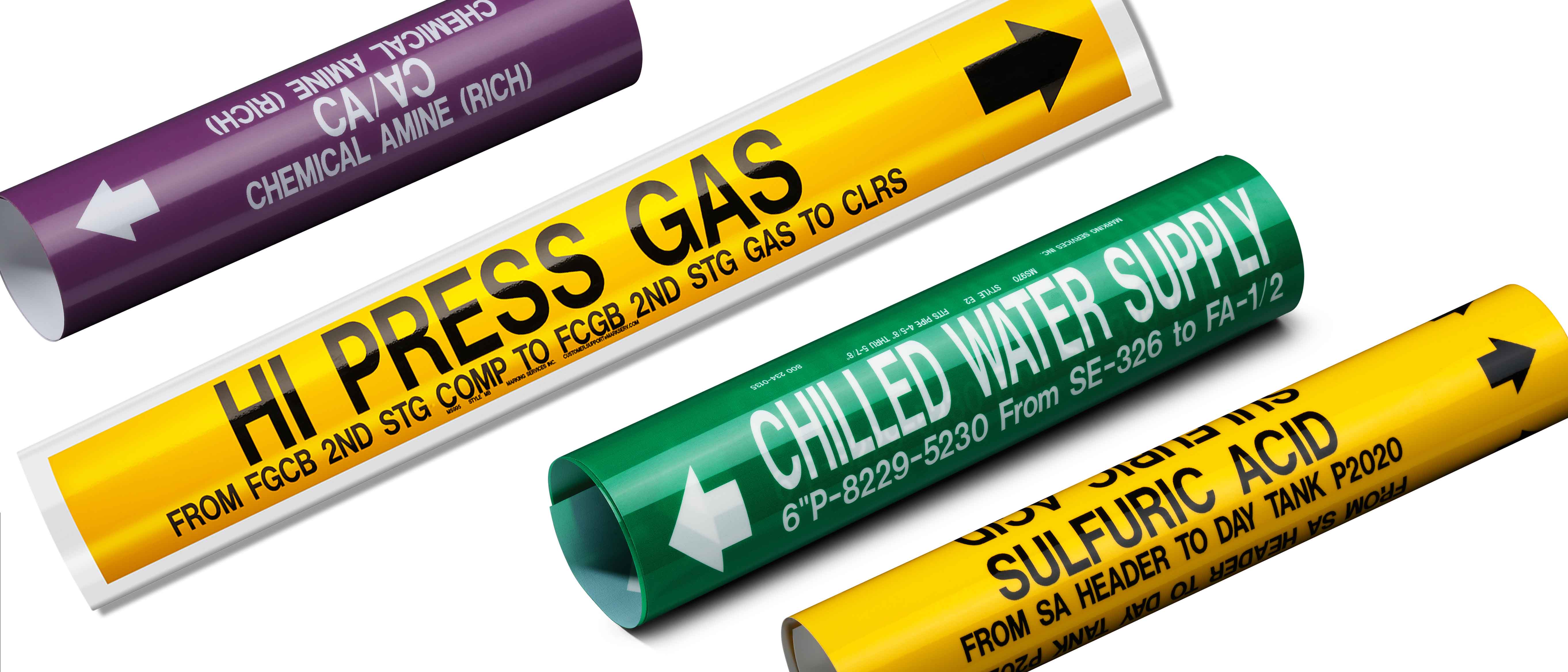 Pipe markers let workers trace process problems and find solutions faster. Our pipe marking solutions help satisfy safety and ASME (ANSI) standards and are available in a wide range of materials that meet your need for indoor, outdoor, harsh environment or light duty applications.
