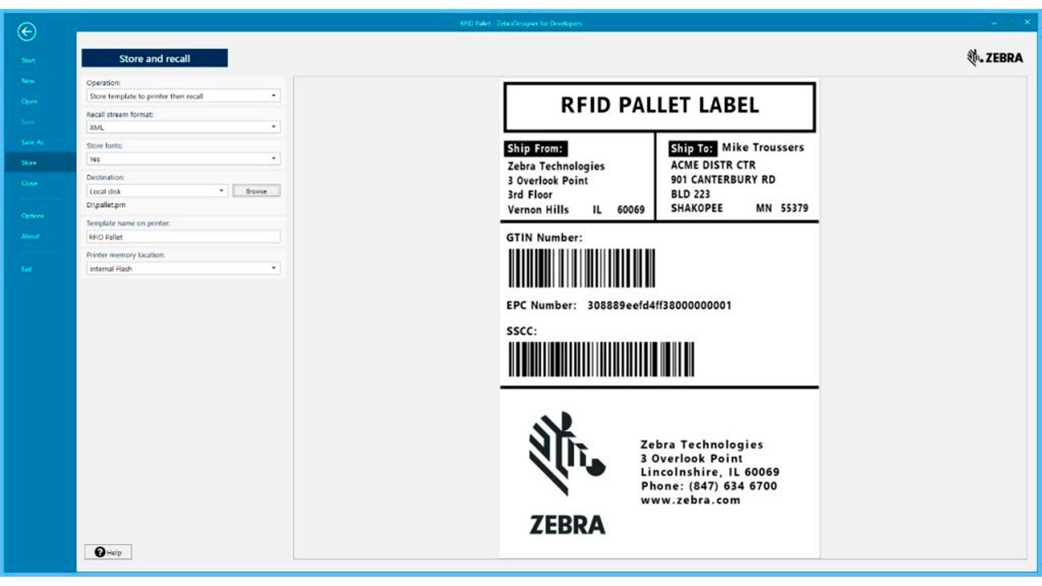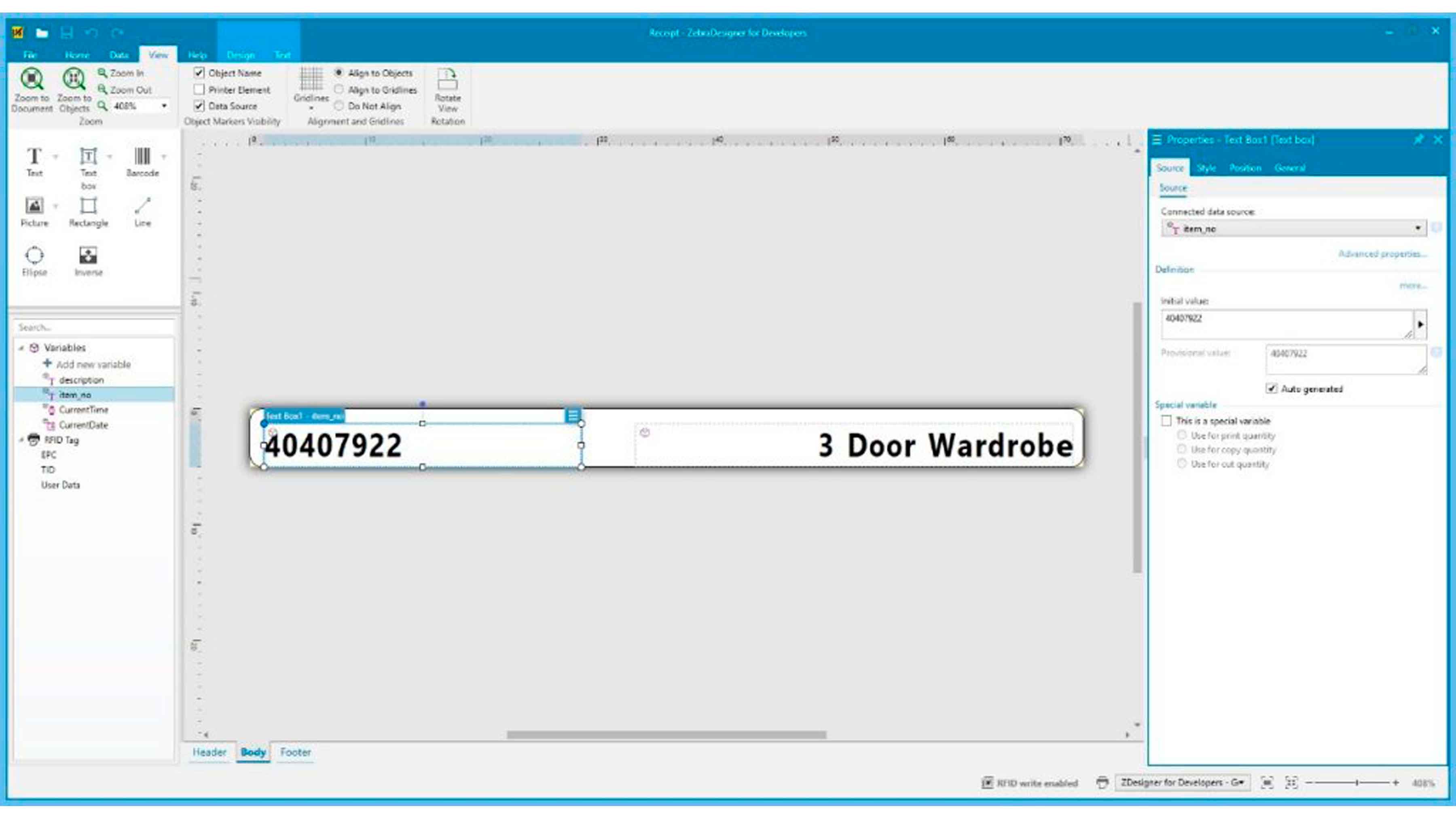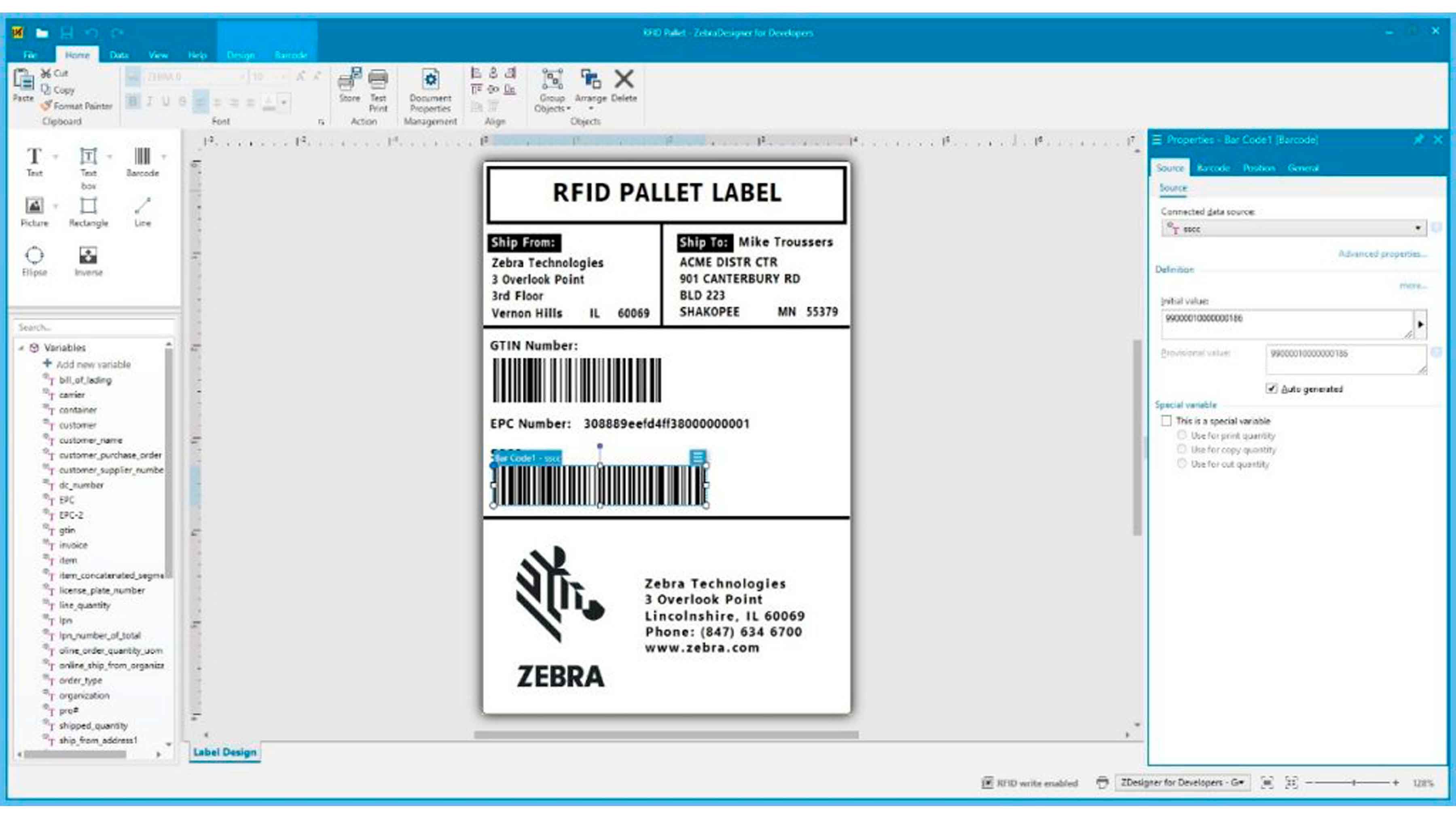 - Incorporate RFID with your template design to support RFID printing and encoding