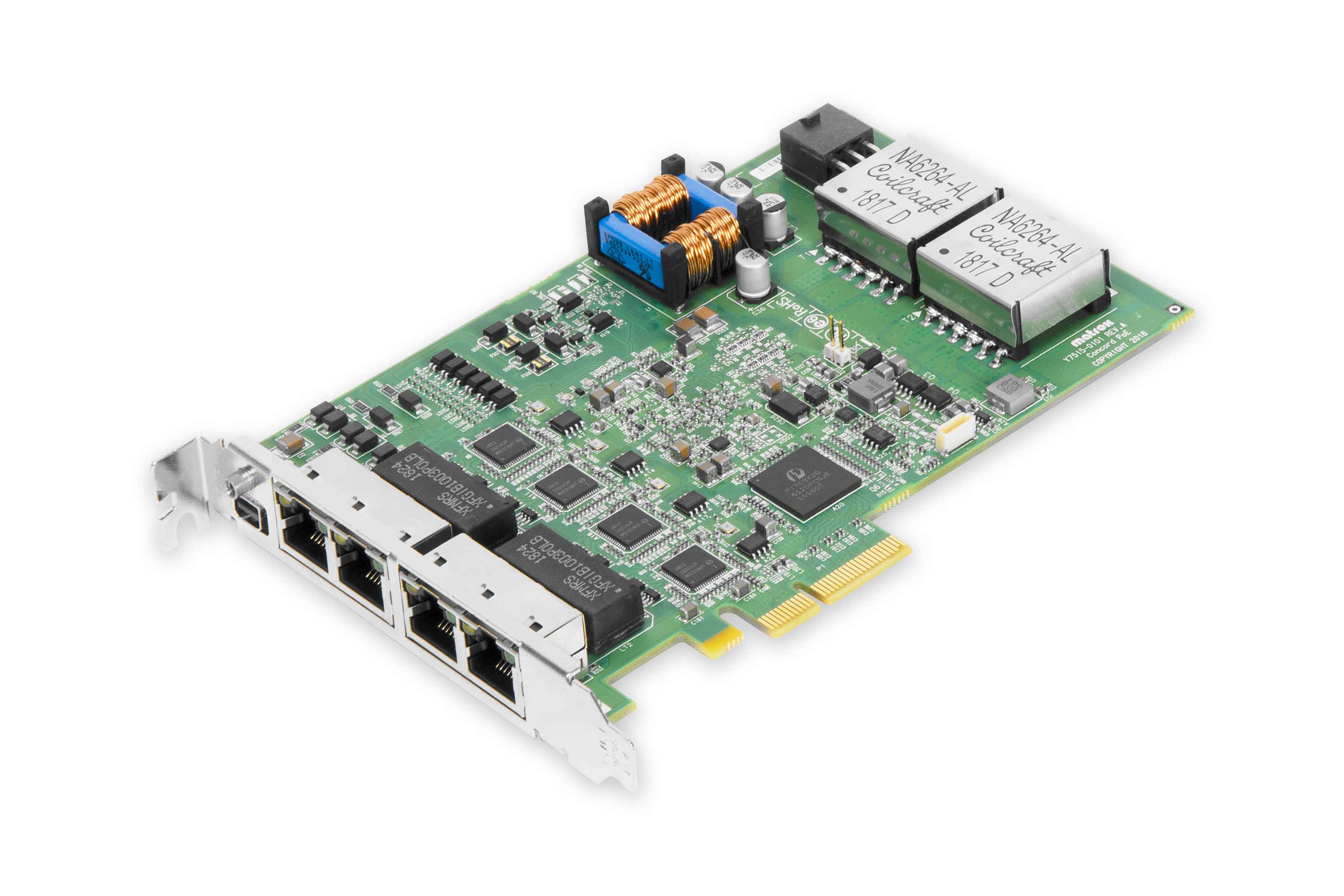 Concord PoE network interface cards (NICs) are available with two or four Gigabit Ethernet ports, as well as Power-over-Ethernet (PoE) connectivity that simplifies system configuration. Certain models offer optional hardware-assisted trigger-over-Ethernet (ToE) capability for multiple cameras working together.
