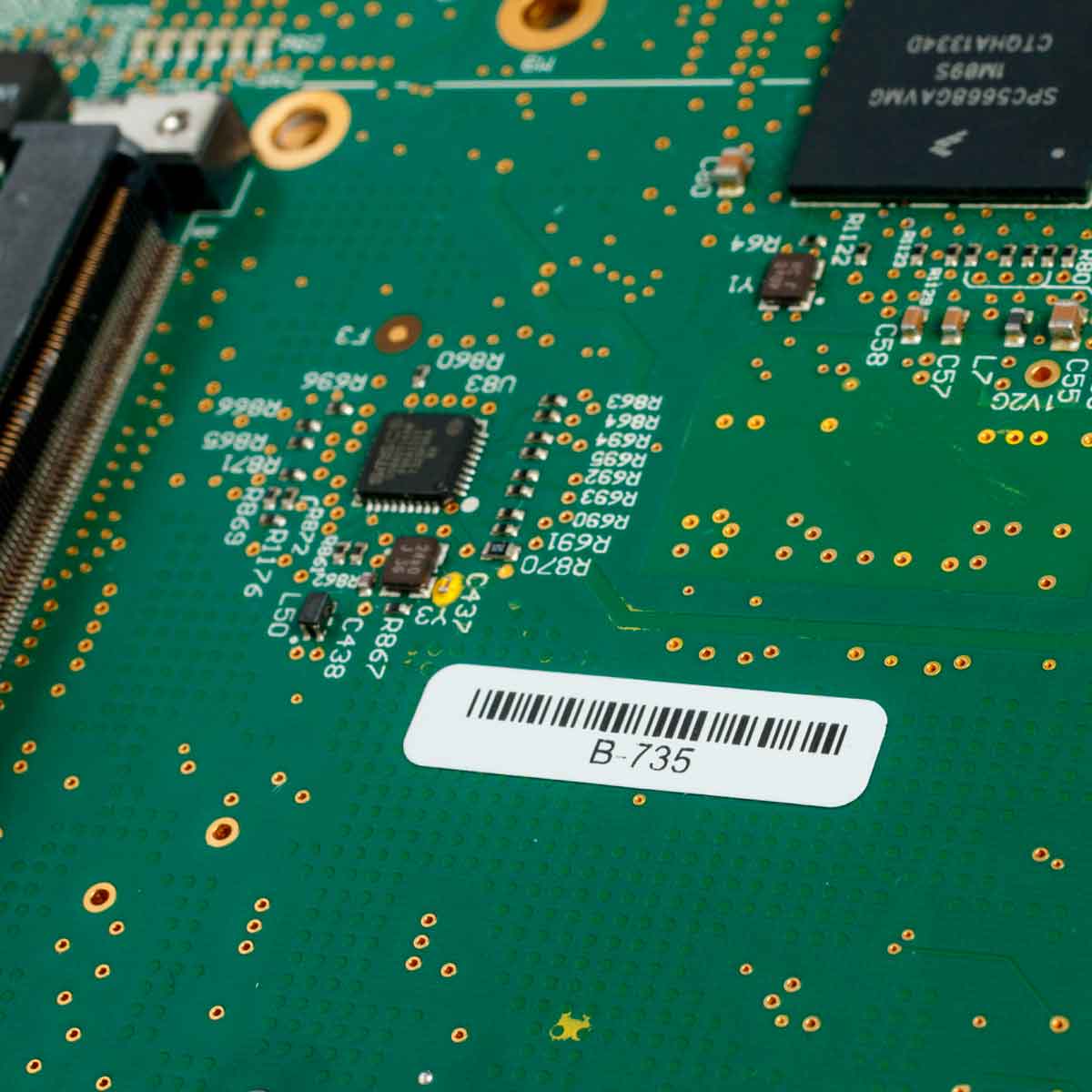For ultra-tough, industrial applications like PCB manufacturing and component ID, tracking is an important part in the process. And materials that stand up to solvents, wave soldering and hot-air leveling, are a natural choice for the job. Nearly indestructible, these thermal transfer printable circuit board labels offer superior resistance to both processing fluids and heat.