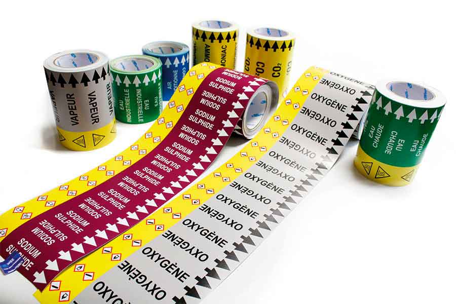 - Printer and Label Applications:Pipe Marker - Label Properties:Aggressive Adhesive, Harsh Environment, Outdoor Durable, Permanent Adhesive
